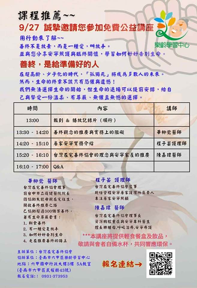 善終是給有準備的人 — 公益教育活動 (台南六甲場)