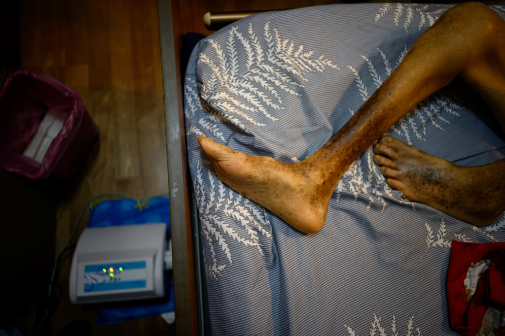 病人臨終前臥床,身心非常多不適,難以表達出來。嫻熟專業的安寧護理師能提供基礎護理,大大舒緩病人的痛苦。(攝影/黃世澤)
