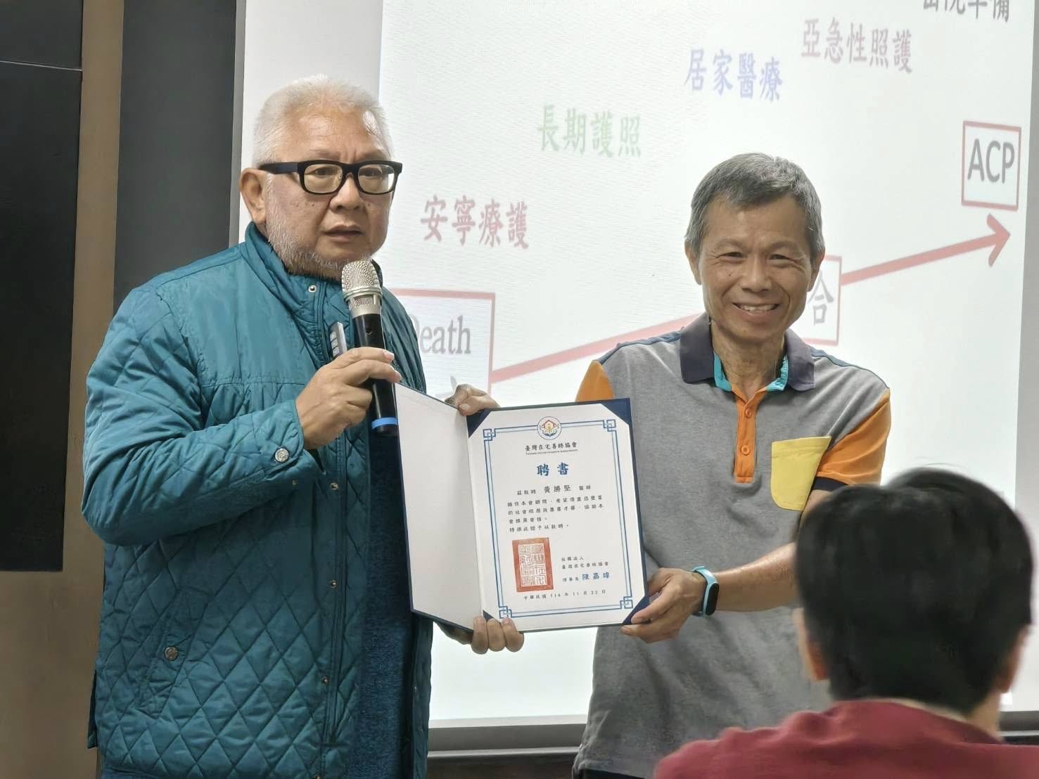 要到各地不是那麼容易,後面必需有一群好友、志工的支援。而且除了光是嘴巴講講,我們還希望協會有一個串聯在地居家醫療護理資源給民眾的任務。我們會花一點點時間介紹在地居家安寧團隊的工作,為地區民眾提供在宅善終的支援,包括居家醫療護理和居家服務,活動會盡力邀約各地的居護朋友們能夠一起參與,跟民眾介紹在地的服務,相信我們倡議在宅善終的動能會越來越強大。