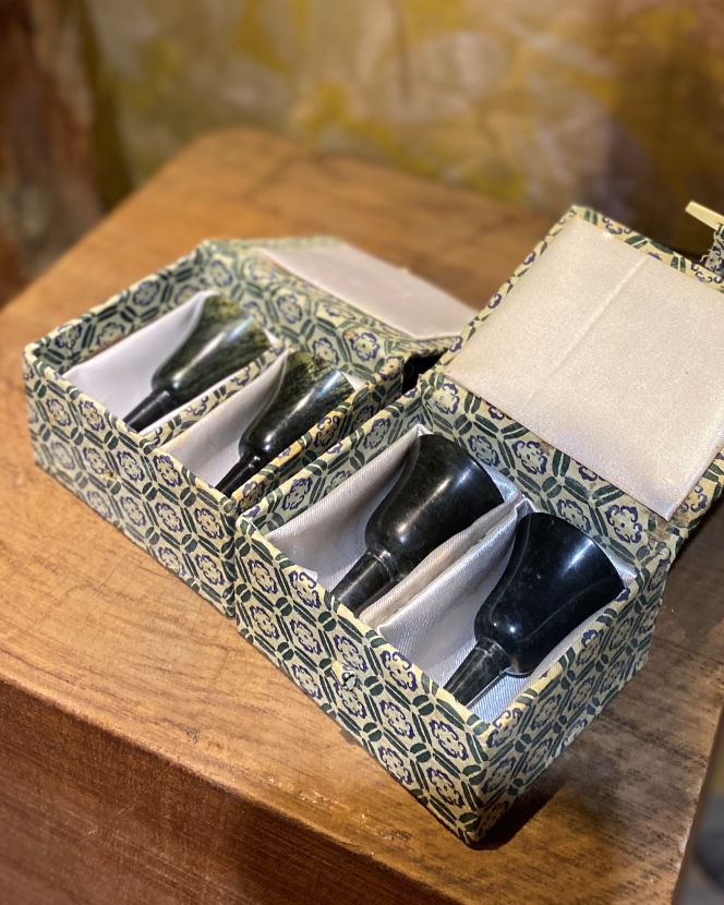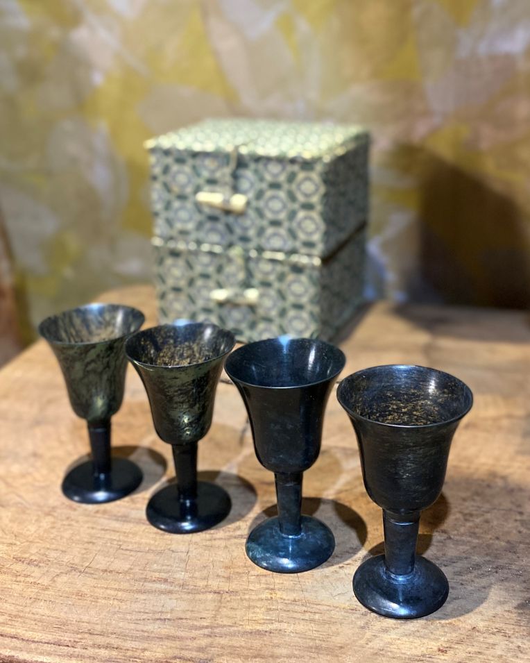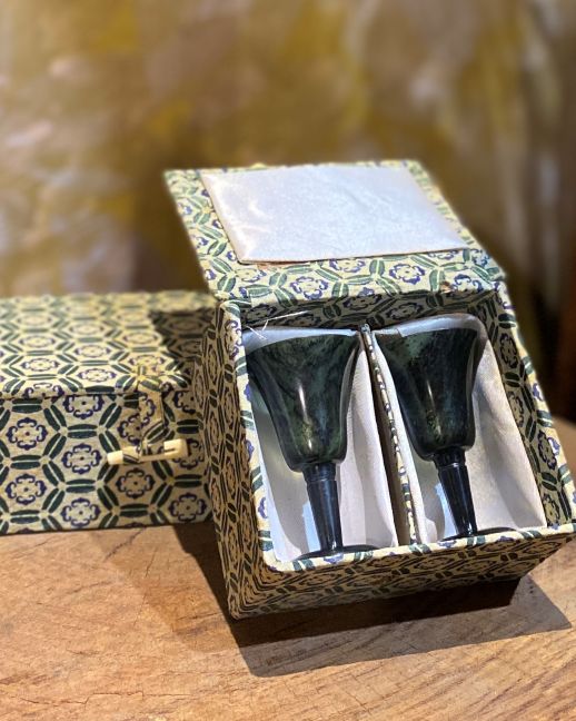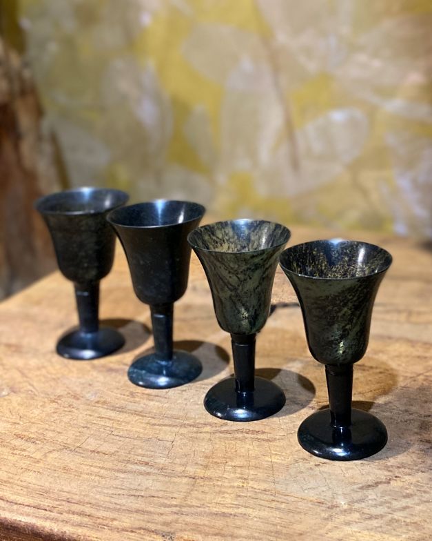 一對 (總共兩個) 酒泉玉研磨成的高腳杯